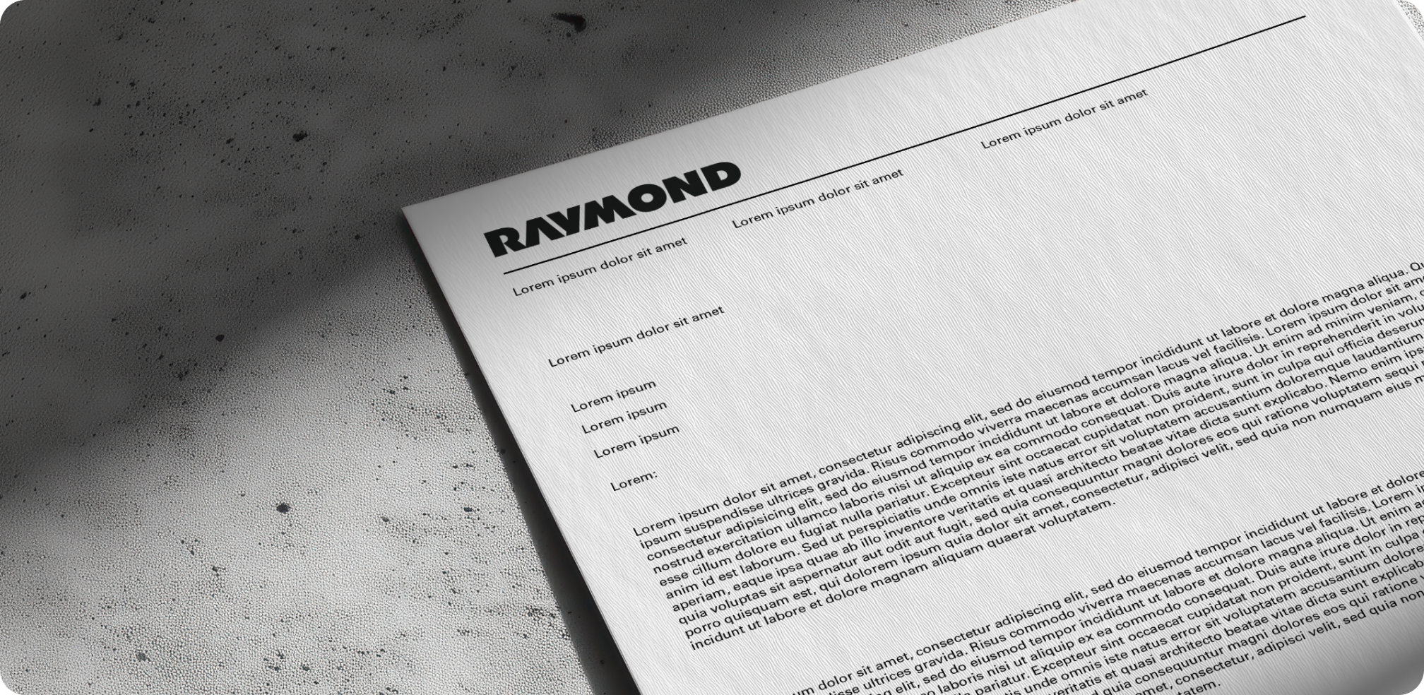 There are variations of the Raymond logo which are built around the same foundations which all stay in line with Raymond guidelines.