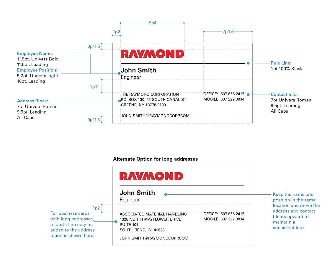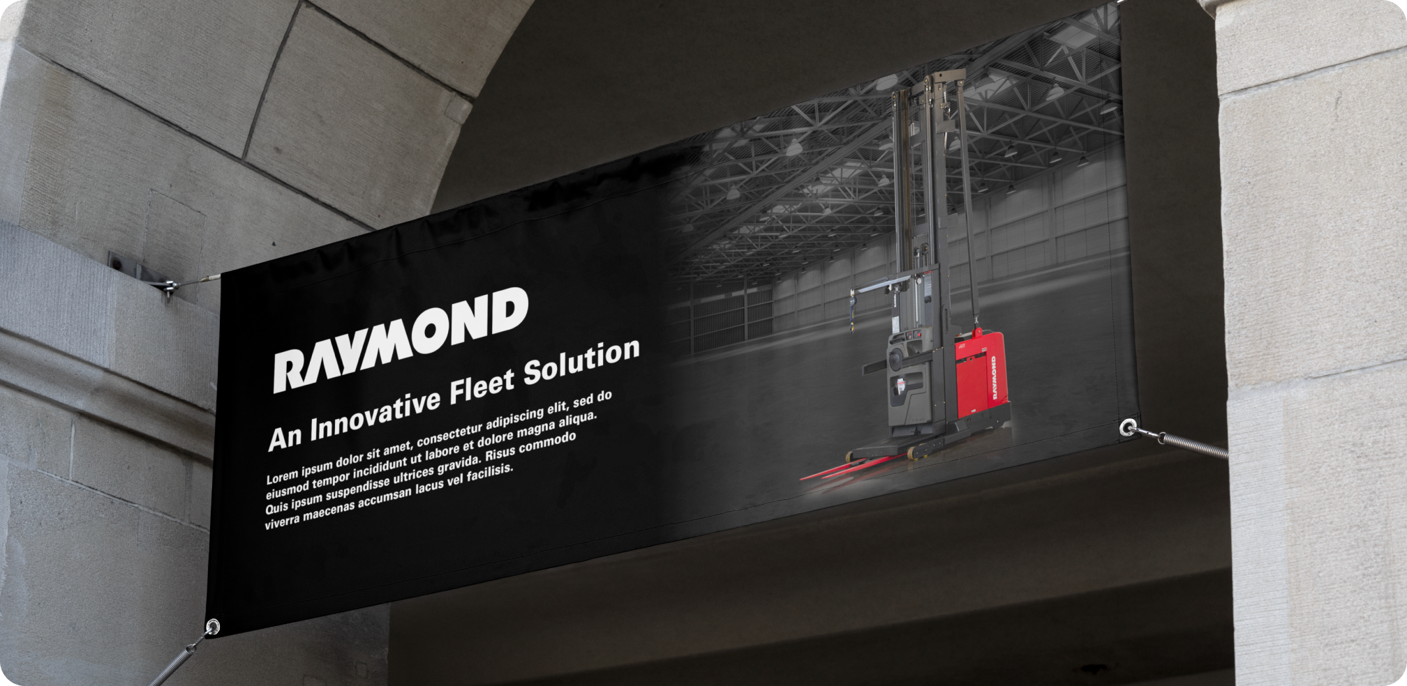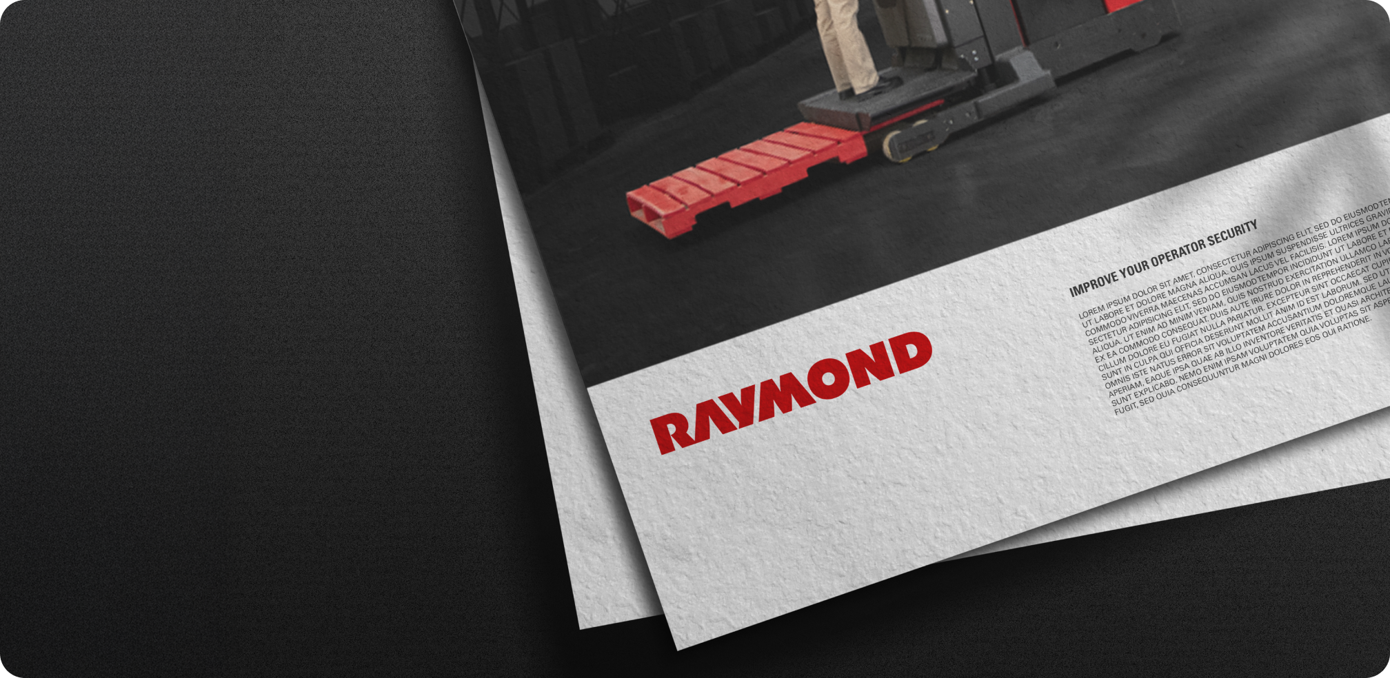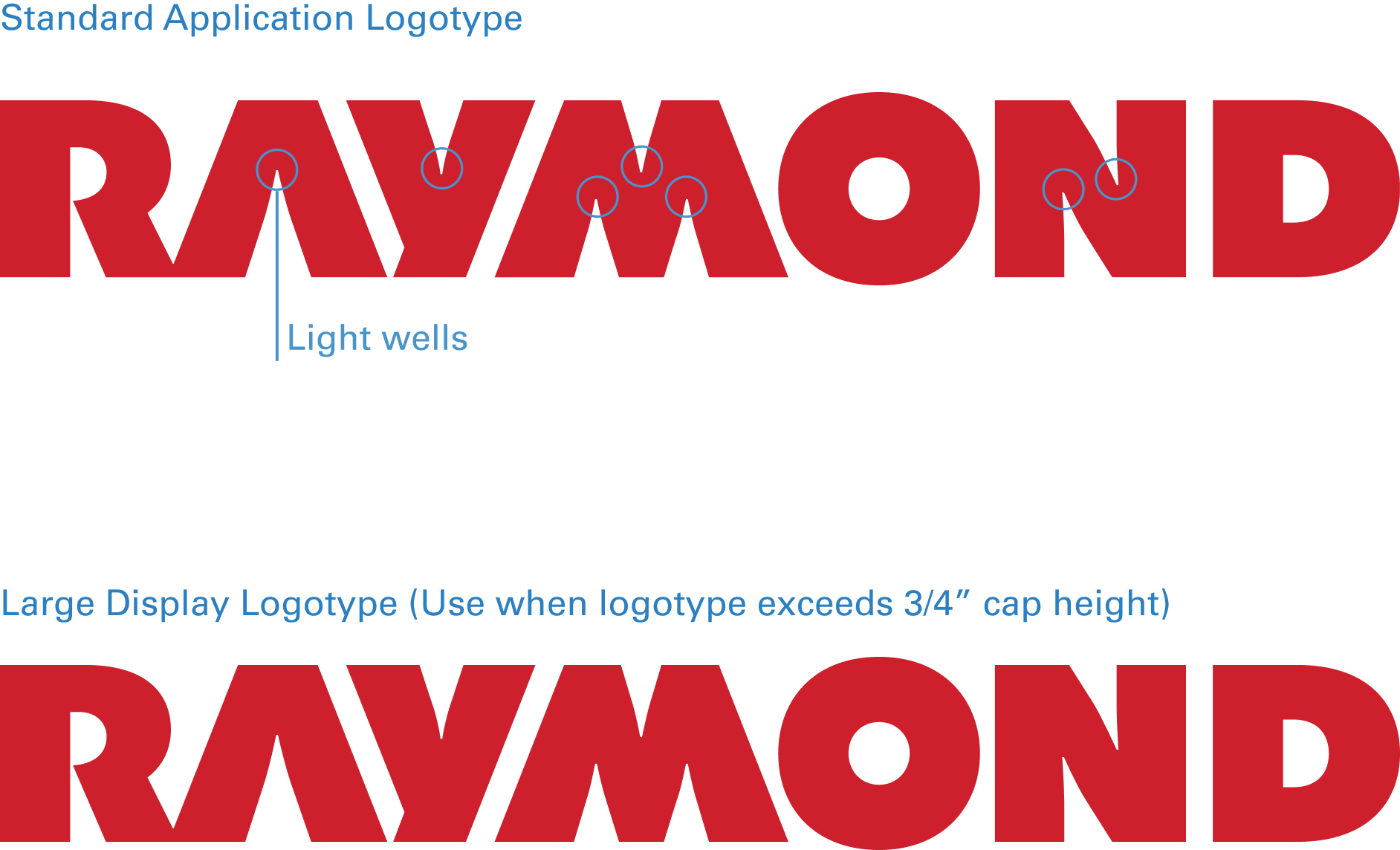 The Raymond logotype has been designed in two versions. The standard application logotype is designed for use when the cap height is less than ¾ inch. The large display version is used for applications such as signage, vehicles and lift trucks.