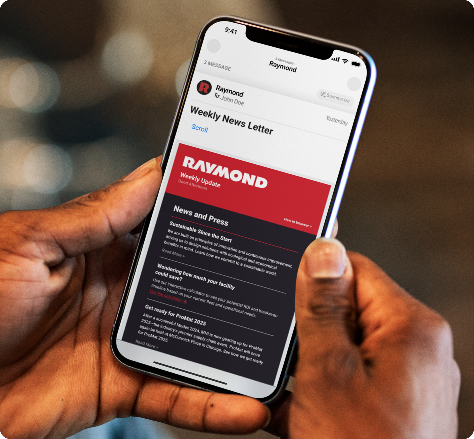 For more than 100 years, Raymond has built a reputation based on top-notch quality, rugged reliability and exceptional customer service. We design and build the best lift trucks in the business. We provide technologies, systems and solutions that bring day-to-day warehouse and distribution operations to a new level of performance. And we support customers with a network of skilled service unmatched in the industry.
