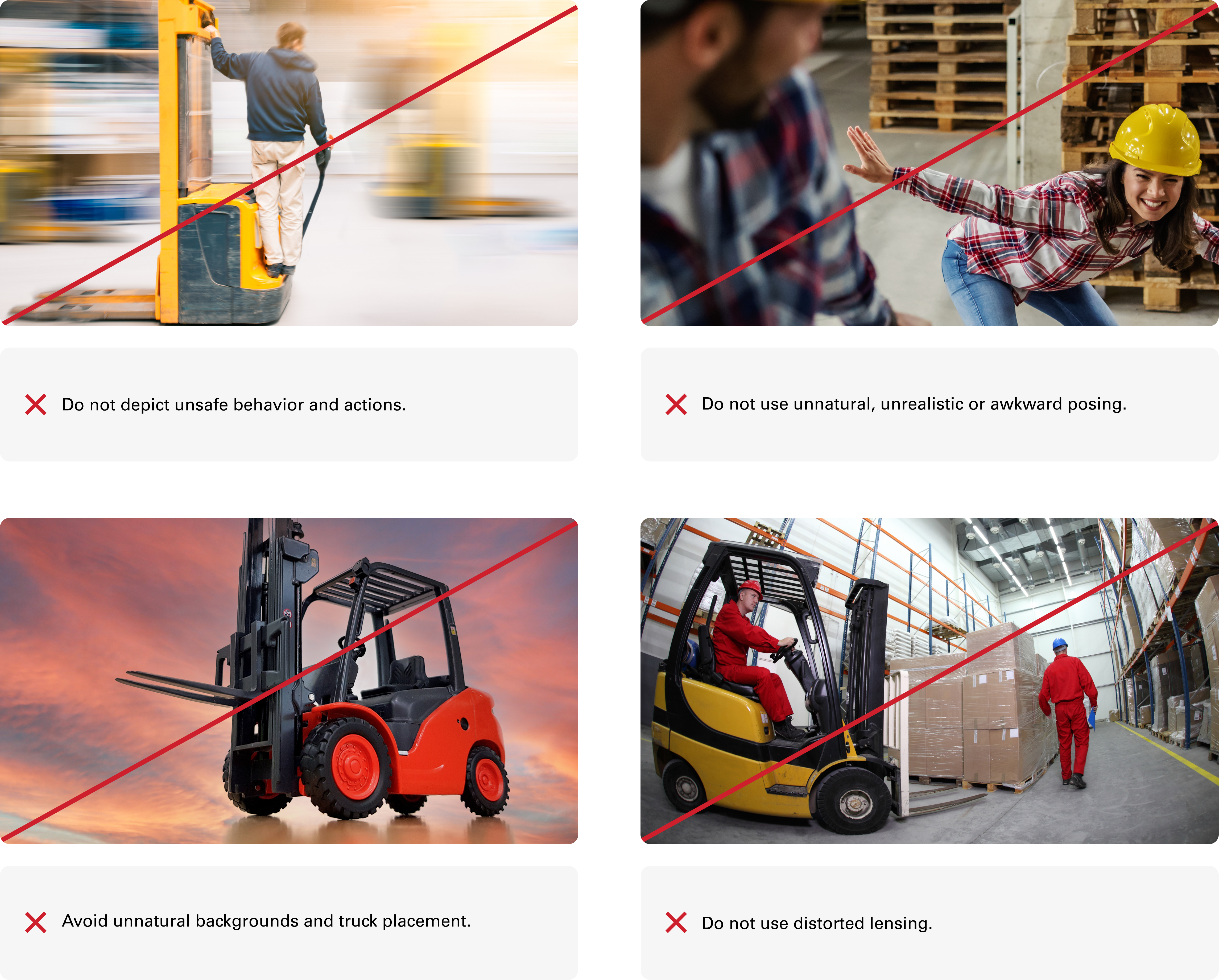 Do not use words similar to the trademark to describe a product, its characteristics or operation. For example, use “a straddle truck with forks that extend the width of two pallets but never use “a straddle truck with deep-reach mechanisms.”